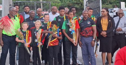 The team was warmly welcomed home by an official delegation in St. Kitts. Upon arrival in Nevis, the Nevis-based swimmers were greeted at the Oualie Pier by Minister Troy Liburd, accompanied by Zahnela Claxton, Juan Williams, Jamir Claxton, and Aljay Newton.